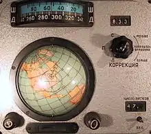 En contraste, las misiones tripuladas de los programas espaciales estadounidenses solo utilizaron un indicador posicional mecánico similar durante dos de las primeras misiones Mercury. Fueron sustituidos muy pronto por un panel de instrumentos equivalente al de un coche). El instrumento americano equivalente al soviético era más simple  y pequeño, totalmente mecánico y accionado manualmente. Dada la disponibilidad de una red de comunicaciones radiofónicas con las aeronaves más extensa  proporcionada por la NASA, las siguientes misiones, incluyendo el programa_Apolo y los vuelos de los transbordadores espaciales, utilizaban mapas de a bordo, telemetría terrestre, y más recientemente, mapas en ordenadores portátiles para proporcionar a los astronautas información posicional.[9]