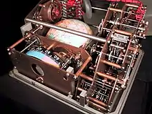 El IMP era un auténtico ordenador mecánico. A partir del movimiento incremental del actuador de solenoide único, el mecanismo de relojería era capaz de producir pulsos oscilantes irregulares, controlando la rotación del globo y la orientación de su eje, y también impulsaba sus dos indicadores con forma de disco para la longitud y la latitud. Algunos inusuales mecanismos de relojería del IMP incluyen intrincados dispositivos, como levas en forma de cardioide, engranajes cónicos de sección cruciforme y "rectificadores mecánicos" capaces de transformar un movimiento alterno en uno analógico unidireccional (véanse las ilustraciones).