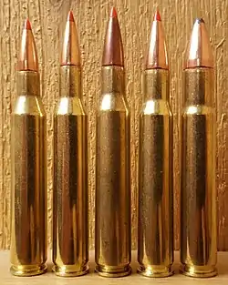 8mm-06 - El 8mm-06 permite a los propietarios de rifles Mauser excedentes militares de 7,92 × 57 mm disparar balas de 8 mm utilizando estuches de latón 30-06 excedentes económicos sin volver a colocar el cañón en el rifle, solo es necesario volver a colocar la cámara.[16]