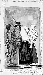 El primer dibujo preparatorio, correspondiente al Álbum B de Madrid, tiene al pie la inscripción: Pobres. ¡Cuantas lo merecerán mejor!. ¿Pues qué es esto?. Que ha de ser que las llevan a San Fernando. Se ve a las dos mujeres muy parecidas al grabado escoltadas por dos soldados con fusil al hombro. El segundo dibujo preparatorio es una sanguina muy rápida, como es costumbre en estos dibujos rápidos difiere bastante de la composición definitiva.[4]