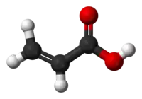 El ácido acrílico es un compuesto químico de fórmula CH2=CHCO2H (C3H4O2). Se trata del ácido carboxílico insaturado más simple, con un enlace doble y un grupo carboxilo que ocupa la posición C1. En su estado puro, se trata de un líquido corrosivo, incoloro y de olor penetrante. Es miscible con agua, alcoholes, éteres y cloroformo. Se produce a partir del propileno, un subproducto gaseoso de la refinación del petróleo.[2]