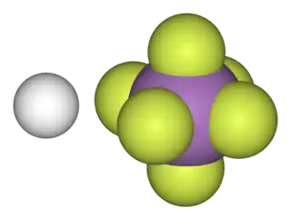 El ácido fluoroantimónico (HSbF6) es una mezcla de fluoruro de hidrógeno y pentafluoruro de antimonio en diversas proporciones.[2] La proporción 1:1 conduce al superácido más fuerte conocido, el cual se ha demostrado que protona incluso a los hidrocarburos para producir carbocationes e H2. El ácido fluoroantimónico es el más corrosivo de los llamados super ácidos.[3]