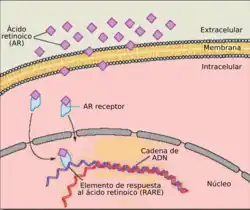 El ácido retinoico (AR), es un metabolito de la vitamina A que interviene en las funciones de la vitamina A necesaria para el crecimiento y desarrollo. El ácido retinoico se requiere en los animales vertebrados (Vertebrata), incluyendo todos los animales superiores como los perros y rara vez se presenta en los humanos. Durante el desarrollo embrionario temprano, el ácido retinoico generado en una región pectoral específica del animal permite determinar la posición a lo largo de la vida. El papel fundamental del ácido retinoico en el desarrollo embrionario es la razón del posible efecto teratogénico (malformación del feto) de los fármacos retinoides, como la isotretinoína utilizado para el tratamiento del cáncer y el acné. Megadosis orales de preformados de vitamina A (palmitato), y el ácido retinoico en sí, también tienen un potencial teratogénico, por el mecanismo de señalización del embrión.