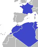 - la Argelia francesa (actual Argelia), primero como territorio conquistado y luego como conjunto de departamentos franceses;