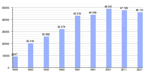 | Gráfica de evolución demográfica de Águeda entre 1849 y 2021 |
