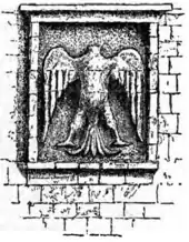 La asociación con Saladino se debe a la representación del águila en el lado oeste del muro de la ciudadela de El Cairo mandada construir por Saladino, aunque el águila en sí es de una fecha más tardía. "El águila de la ciudadela de El Cairo es de fecha incierta, probablemente bastante posterior al periodo de Saladino".[2] El águila aparece sin cabeza y presumiblemente pudo ser una águila bicéfala. La ciudadela de El Cairo no está en su localización original, fue trasladada desde un lugar desconocido en un periodo inconcreto allá por el año 1670 a su lugar actual.[3]