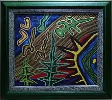 De sus obras impactan las formas y figuras nacidas de temas antropológicos de las culturas precolombinas del área andina - amazónica y el manejo del color en forma plana y pura, enfatizando los entornos de sus creaciones. Crea dioses imaginarios, lunas inmensas y figuras antropomorfas con mensajes exóticos.