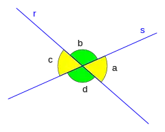 En la figura, los ángulos,a,c y b, d son opuestos por el vértice. Dos ángulos opuestos por el vértice son congruentes o iguales.