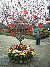 «Hoa đào» (en el norte) o «Hoa mai» (en el sur) y kumquat, los árboles también se decoran y se exhiben en las casas vietnamitas durante el festival Tết.