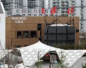 - Madrid - tuvo una presencia relevante en el sector UBPA con un pabellón propio de 2.500m². El pabellón constó de dos construcciones diferentes: el edificio Casa de Bambú y una columna de publicidad conocida como «Árbol de Aire». El edificio es una réplica de la Casa de Bambú, un innovador edificio de viviendas de protección oficial construido en 2007 en el barrio madrileño de Carabanchel. Se trata de un cuerpo rectangular cubierto por una piel de bambú que contiene 88 viviendas, obra del estudio de arquitectura Foreign Office Architects (FOA). El Árbol de Aire es una réplica de los pabellones o árboles bioclimáticas situados en el bulevar ecológico de Vallecas diseñado por el estudio de Belinda Tato, Ecosistema Urbano. Se trata de una experiencia innovadora de diseño urbano elaborada con criterios medioambientales y de sostenibilidad, como el empleo de materiales reciclados, la utilización de energías alternativas y la climatización por sistemas pasivos. Después del cierre de la Expo, el pabellón de Madrid permanecerá en su sitio como donación de la Comunidad de Madrid a la ciudad de Shanghái.