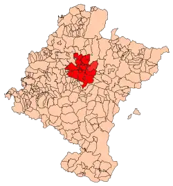 Está formada por los municipios de: Ansoáin, Valle de Aranguren (Mutilva), Barañáin, Beriáin, Berrioplano (Aizoáin, Berriosuso, Berrioplano y Artica), Berriozar, Burlada, Cendea de Cizur, Valle de Egüés (Olaz, Sarriguren y Gorraiz), Echauri, Ezcabarte (Arre y Oricáin), Cendea de Galar (Cordovilla), Huarte, Juslapeña, Noáin-Valle de Elorz (solo para Noáin), Oláibar, Cendea de Olza, Orcoyen, Pamplona, Tiebas-Muruarte de Reta, Villava, Zabalza y Zizur Mayor.[1]