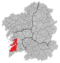 ![]() Ubicación del área metropolitana de Vigo-Pontevedra en Galicia. | ||