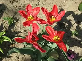 Tulipa gesneriana, una especie de tulipán que es la flor nacional de Afganistán.