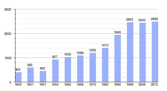 | Gráfica de evolución demográfica de Écuelles entre 1800 y 2012 |