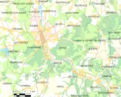 La aglomeración urbana de Épinal comprende once comunas y una superficie de 143,12 km².[6]