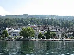 La zona es un lugar de vacaciones de alto nivel, muy cotizado. Es una ciudad balneario a orillas del lago Lemán, que ha recibido la visita, por más de dos siglos, de realezas mundiales como los reyes Eduardo VII y Jorge V del Reino Unido y el rey Faruk de Egipto, y celebridades como la condesa Anna de Noailles y Marcel Proust. Fue la sede de la 29.ª Cumbre del G8, celebrada entre el 1 y el 3 de junio de 2003.