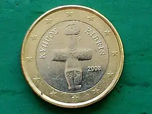 Ídolo de Pomos en la moneda chipriota de un euro.