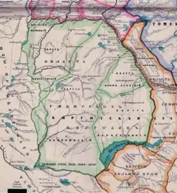 ![]() Mapa de la óblast de Siberia kirguisa en 1857. | |||||||||||||||||||||||||||||||||||||||||