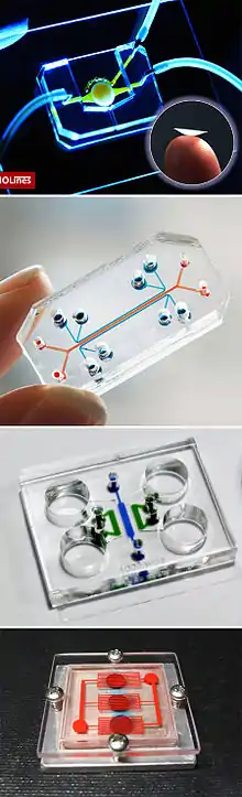 Un órgano en un chip (OoC por sus siglas en inglés) es un sistema de cultivo celular que simula el microambiente y los aspectos funcionales clave de órganos vivos en una escala microscópica, usando principios de biomimetismo, microingeniería y tecnologías de microfluidos. Esta plataforma está diseñada principalmente para la manufactura y prueba de nuevos medicamentos como parte del descubrimiento de fármacos,[1] aunque otro propósito es aportar un sustituto más rápido y menos costoso para la experimentación con animales, útil para estudios de toxicología y ensayos clínicos.[2]