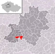 Se encuentra ubicada al norte de la región y de Praga, cerca de la confluencia de los ríos Elba y Moldava, y de la frontera con las regiones de Ústí nad Labem y Liberec.[1]