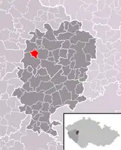 Se encuentra ubicada al noreste de la región, en la cuenca hidrográfica del río Berounka —un afluente izquierdo del río Moldava que, a su vez, lo es del Elba—, y cerca de la frontera con la región de Bohemia Central.[1]