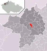Se encuentra ubicada al noroeste de la región, en la ladera sur de los montes Metálicos, cerca del río Ohře —un afluente izquierdo del río Elba—, de la región de Karlovy Vary y del estado alemán de Sajonia.[1]