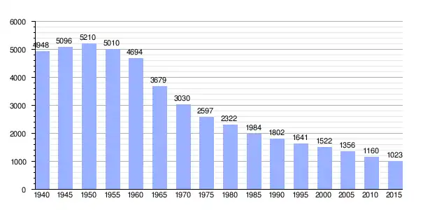 Según los datos del censo japonés, la población de Ōshika ha disminuido rápidamente en los últimos 50 años.[5]