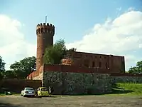 - Ruinas del castillo gótico de la Orden Teutona (1335-1350), siendo un ejemplo único en el norte de Europa del castillo fortaleza imitación del estilo del ría Rhin.[9]