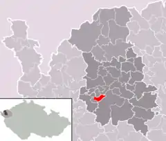 Se encuentra ubicada al norte de la región, cerca de la orilla del río Ohře —un afluente izquierdo del río Elba—, y a poca distancia al sur de la parte occidental de los montes Metálicos y de la frontera con Alemania (estado de Sajonia).[1]