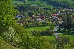 Se encuentra ubicada al noreste de la región, cerca del nacimiento del río Sázava —un afluente derecho del río Moldava— y de la frontera con las regiones de Moravia Meridional y Pardubice.[1]