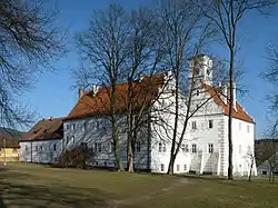 Se encuentra ubicada al sur de la región, cerca del río Otava —un afluente izquierdo del río Moldava que, a su vez, lo es del Elba— y de la frontera con la región de Bohemia Meridional y el estado alemán de Baviera.[1]