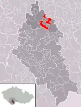 Se encuentra ubicada en el centro-sur de la región, en la zona de la selva de Bohemia, a poca distancia al sur de la ciudad de Praga, de la orilla del río Moldava —el más largo del país, afluente del río Elba— y al norte de la frontera con Austria.[1]