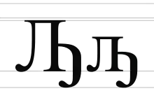Se usaba en el idioma chuvasio, especfíficamente en la ortografía de Yakovlev que se usó entre 1873 y 1938 para representar el sonido [lj].[1]