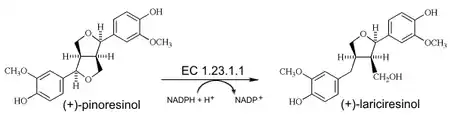 La (+)-Pinoresinol reductasa (EC 1.23.1.1), conocida también como pinoresinol/lariciresinol reductasa; o PLR es una enzima a la cual corresponde el nombre sistemático: (+)-lariciresinol:NADP+ oxidoreductasa.[1]