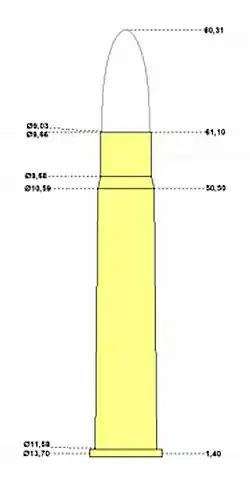 Fue descontinuado en 1936, junto con el rifle de 1895. [1] [2] Se deben evitar cargas que desarrollen 45.000 CUP o más en los antiguos cañones de palanca de 1895. [2]