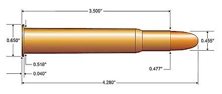 La gran capacidad del casquillo, de 3.5 pulgadas (8,9 cm) de largo tiene una gran capacidad de carga de pólvora, y, en comparación con otros cartuchos Nitro Express similares, tiene un anillo y paredes del casquillo más gruesas, y con presiones bajas comparadas con otros Nitro Express que, cuando se combina con su borde grueso y sus paredes pesadas, hace que sea casi imposible que se atraque en la recámara.