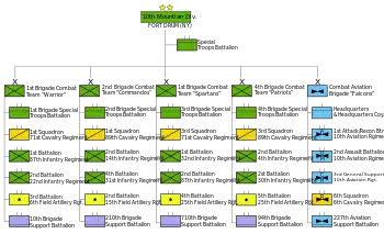 La 10.ª División de Montaña está compuesta por cuatro Brigade Combat Team, una Brigada de Aviación de Combate, y un Batallón de Tropas Especiales.[42]