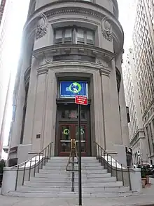 La cantidad total de espacio interior es de aproximadamente 8361 m².[25] El espacio del primer piso y el entrepiso estaba destinado a ser utilizado por bancos, mientras que el sótano estaba reservado para restaurantes.[6][17][22] El sótano todavía sirve como su propósito original, pero el Servicio de Parques Nacionales no pudo determinar si un banco alguna vez usó el primer piso y el entrepiso. El primer piso mide aproximadamente 1 m sobre el nivel de la calle y contiene vestíbulos, locales comerciales y acceso a elevadores. El vestíbulo principal de Pearl Street y el vestíbulo de carga de Beaver Street están conectados por un pasillo con cuatro ascensores. Se accede al local comercial por la entrada de esquina, que contiene un vestíbulo de madera con puerta giratoria.[17] El vestíbulo del ascensor contiene un techo abovedado, paredes con paneles de madera y espejos y puertas de ascensor de madera y metal. Al entrepiso, un espacio en forma de U arriba a 2⁄3 del primer piso, se accede por una escalera en el lado oeste.[24]