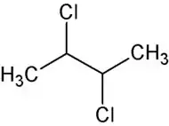 El 2,3-diclorobutano es un compuesto orgánico de fórmula molecular C4H8Cl2. Es un haloalcano lineal de cuatro carbonos en el cual dos átomos de cloro están unidos a los carbonos 2 y 3 de la cadena carbonada.[2][3][4][5] Estos dos carbonos son asimétricos, por lo que existen varios enantiómeros de este compuesto.