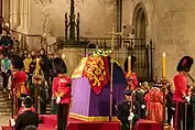 - Reposo de la reina inglesa, Elizabeth II en el Palacio de Westminster, tras su muerte.