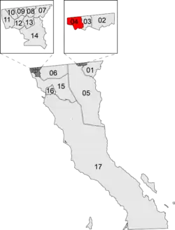 Originalmente el 4.º distrito correspondió al municipio de Tecate, posteriormente ocupó el territorio del municipio de Mexicali.[2]