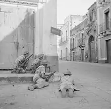 El 4 de agosto, los alemanes volcaron municiones en el aeródromo de Catania y se retiraron y el 5 de agosto, el 6.º y el 9.º D.L.I. entraron en Catania. El resto del avance fue a través del territorio ideal para una emboscada, con viñedos en terrazas y altos muros de piedra, causando muchas víctimas.[64] Con el final del enfrentamiento, el 17 de agosto, la división descansó y absorbió refuerzos. El 10 de octubre, la 168.ª Brigada regresó a la 56.ª División, para entonces implicada en las primeras etapas de la Campaña italiana, y fue reemplazada permanentemente por la 231.ª Brigada, que también luchó en Sicilia. La 50.ª División se enteró de que debía regresar a Gran Bretaña, ya que el general Montgomery, comandante del Octavo Ejército, junto con las divisiones de infantería del 7.º Blindado y la 51.ª (De montaña), eligieron estar entre las divisiones veteranas a participar en la campaña del noroeste de Europa.[65]