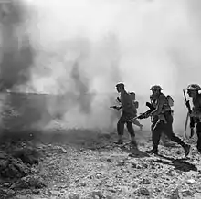 Los cabecillas enemigas eran italianos reforzados por pistoleros alemanes. Fueron tomados por sorpresa. Era avanzada la noche antes que notaran que toda la división estaba pasando por sus líneas. Algunos vehículos circularon sobre minas, a otros les dispararon, pero en general sufrimos pocas bajas y los batallones de ataque cumplieron su labor a cabalidad. La infantería irrumpió con bayonetas y los italianos huyeron, dejando su armamento y equipo en las trincheras.Teniente H Moss, Oficial de la 50a Division de Inteligencia