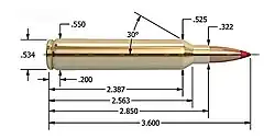 Si bien es ligeramente más lento que el 28 Nosler, es básicamente debido al espacio que comúnmente se deja entre la garganta del cañón y el inicio del estriado para reducir las altas presiones que se generan.[3]