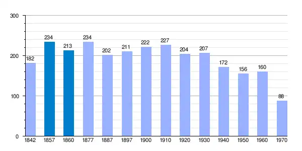 | Gráfica de evolución demográfica de Añoza[4] entre 1842 y 1970 |