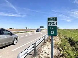 ![]() Señal kilométrica 0 en el cruce con la A-491 | ||