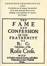 Desde un punto de vista histórico y cronológico, queda claro sin embargo que la tradición rosacruz comienza en el siglo XVII con los primeros Manifiestos Rosacruces publicados en Europa, concretamente en Kassel (Alemania), titulados la "Fama Fraternitatis" publicado en 1614 y la "Confessio Fraternitatis" publicado un año más tarde, a las que le siguen "Las bodas alquímicas de Christian Rosacruz", obras todas ellas de autor desconocido pero atribuidas a Johann Valentin Andreae (1586-1654 d.c.), escritor, matemático, teólogo, místico y reformador social alemán.[6]