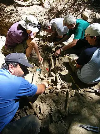 ![]() Exhumación, por parte de la ARMH, de una fosa de represaliados de la Guerra Civil en Tejedo del Sil (El Bierzo). | ||