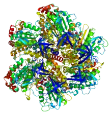 Estructura de la subunidad beta de la ATP sintasa F1 mitocondrial. Imagen basada en PyMOL a partir de la secuencia del gen correspondiente, disponible en PDB.