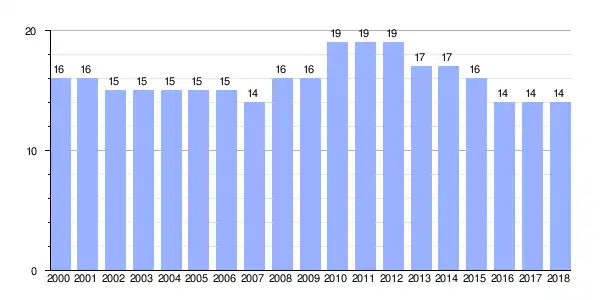 | Gráfica de evolución demográfica de A Igrexa entre 2000 y 2018 |